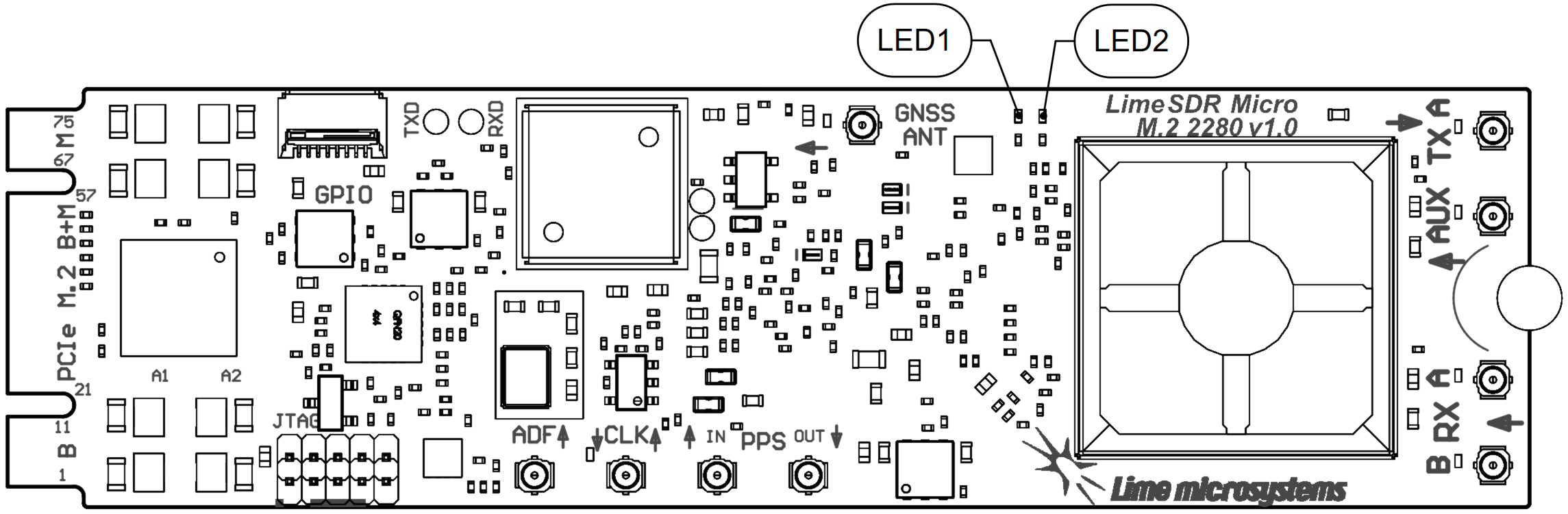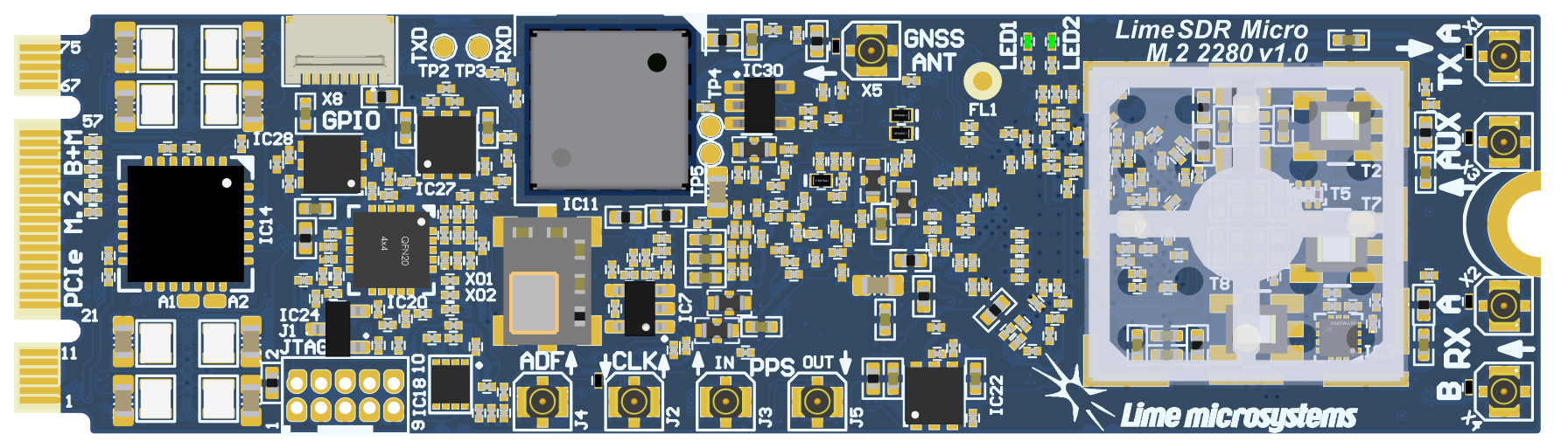 Figure 1: LimeSDR Micro M.2 2280 v1.0 top
